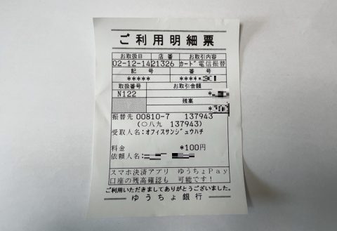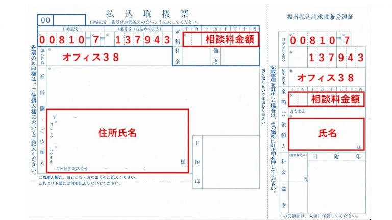 | 口座名称 | オフィス38(オフィスサンジュウハチ) |